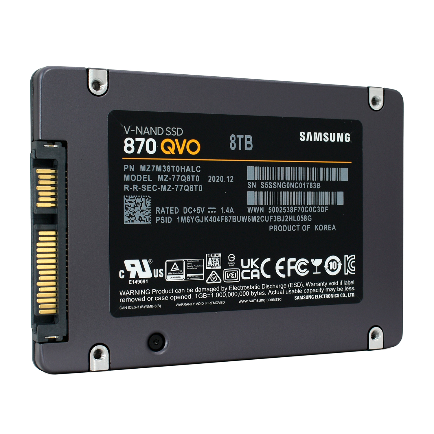 Твердотельный накопитель SSD Samsung MZ-77Q8T0BW, 8 TB SATA 870 QVO, SATA 6Gb/s, 7mm