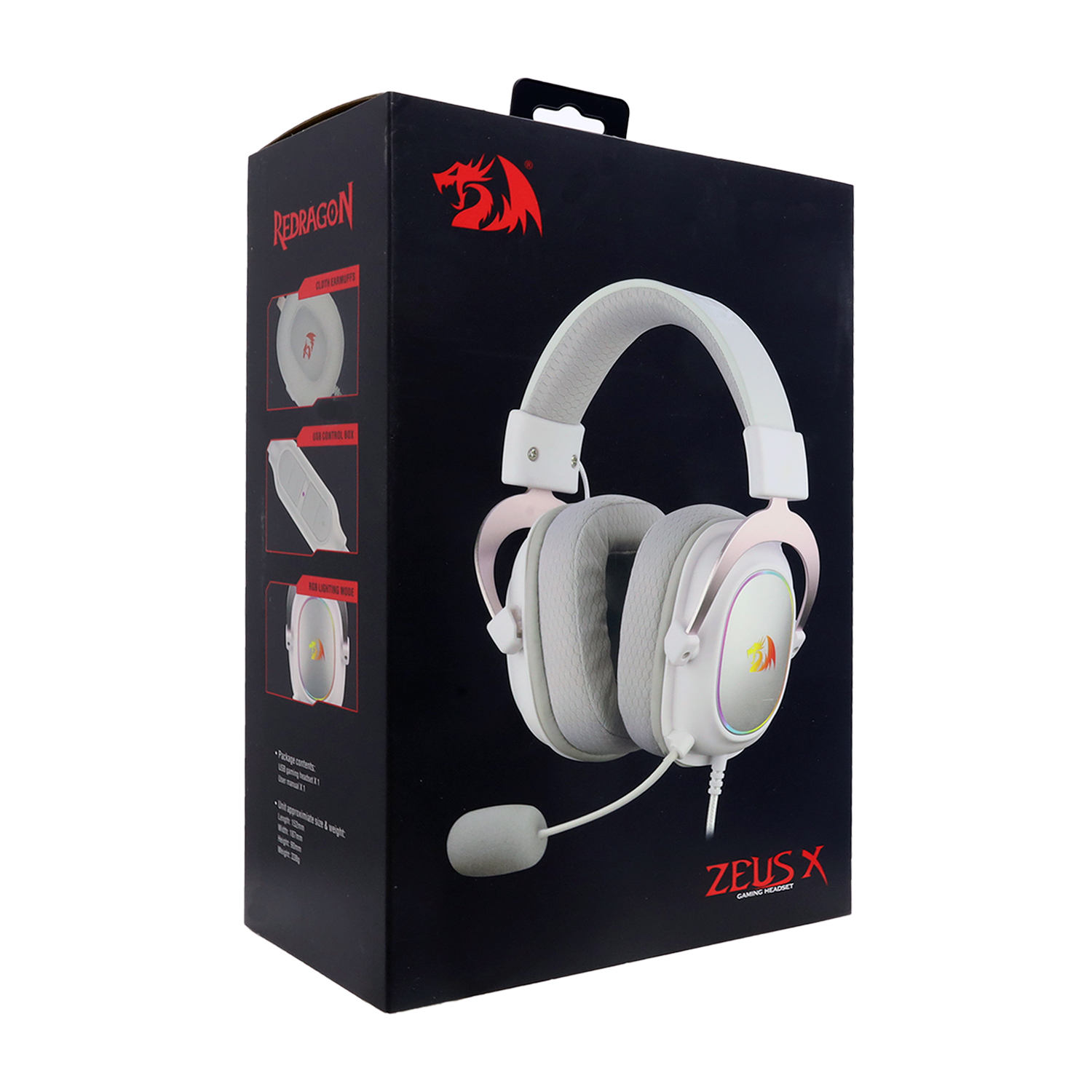Уц. Гарнитура Redragon Zeus X, Белый, повреждена упаковка Garnitura 64 Ohm, 50-20000Hz, 98dB, 2m cable 7.1 virtual, RGB, USB, White
