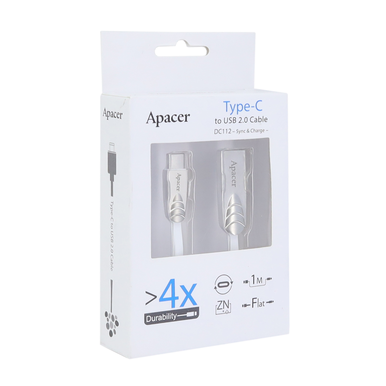 Уц. Кабель USB, Apacer DC112, APDC112W-1, 1.0м, Белый, повреждена упаковка Cable Type A - Type C, USB 2.0, white