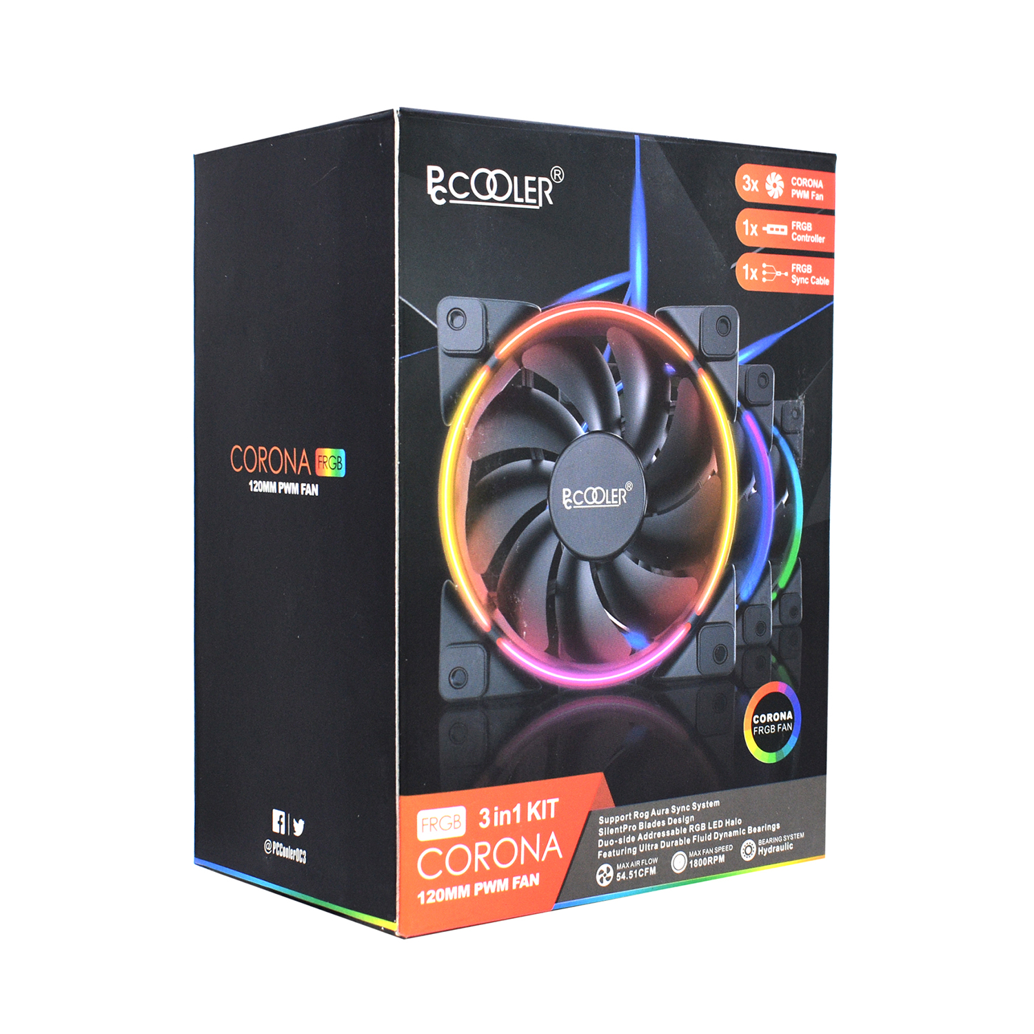 Уц. Комплект вентиляторов PCCooler CORONA FRGB KIT, 3 in 1, не работает подсветка Fan kit for case, 12cm x 3, (SilentPro Blade), 1000-1800rpm, 54.51