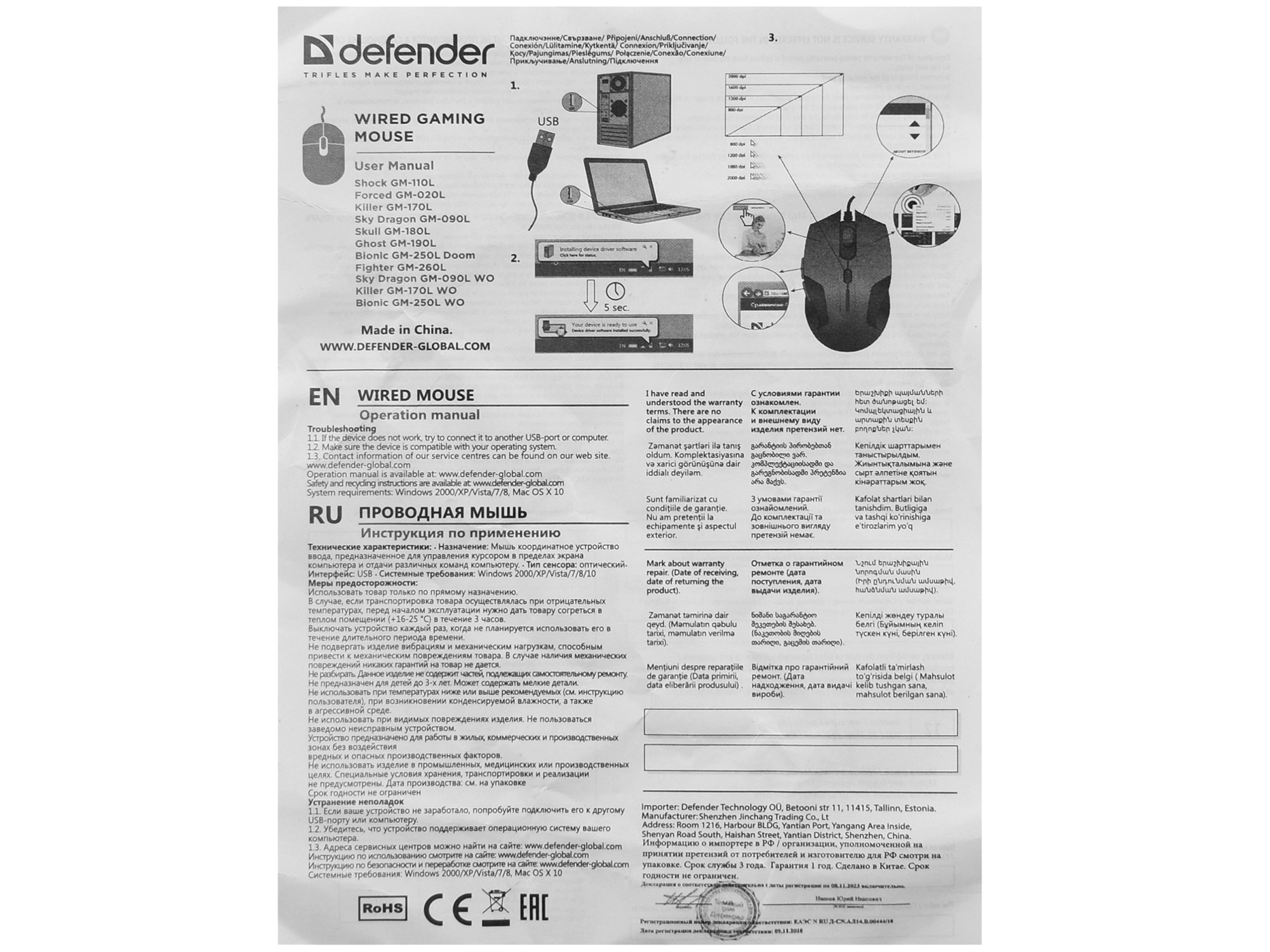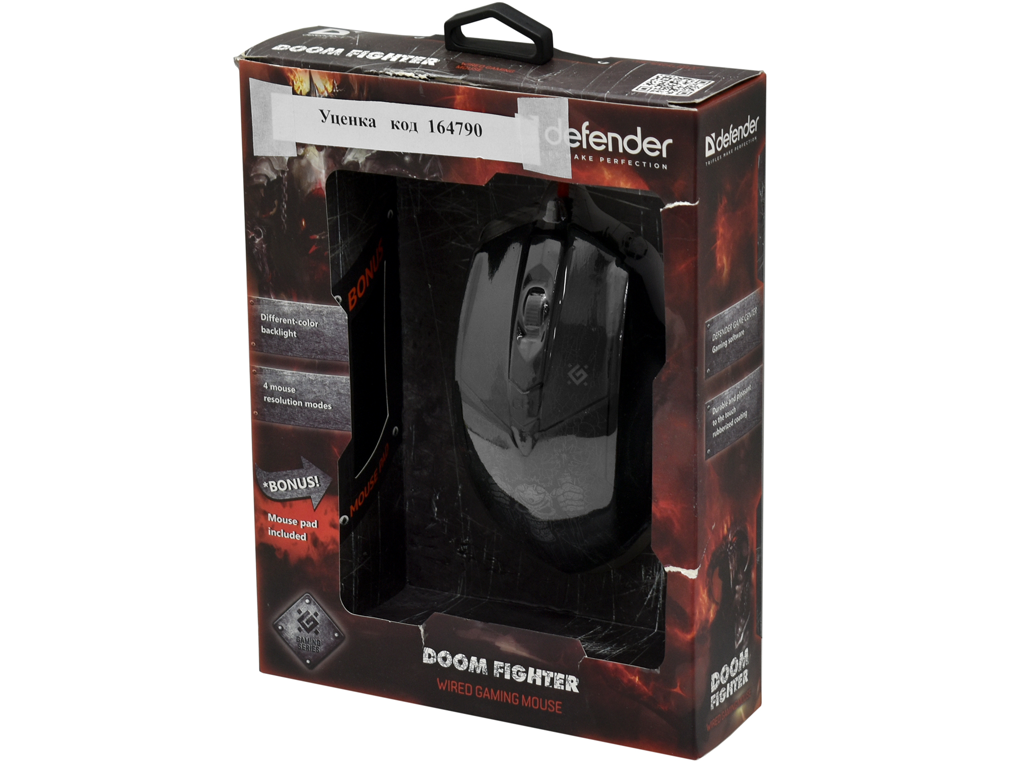 Уц. Мышь Defender Doom Fighter GM-260L, USB, 52260, + коврик для мышки