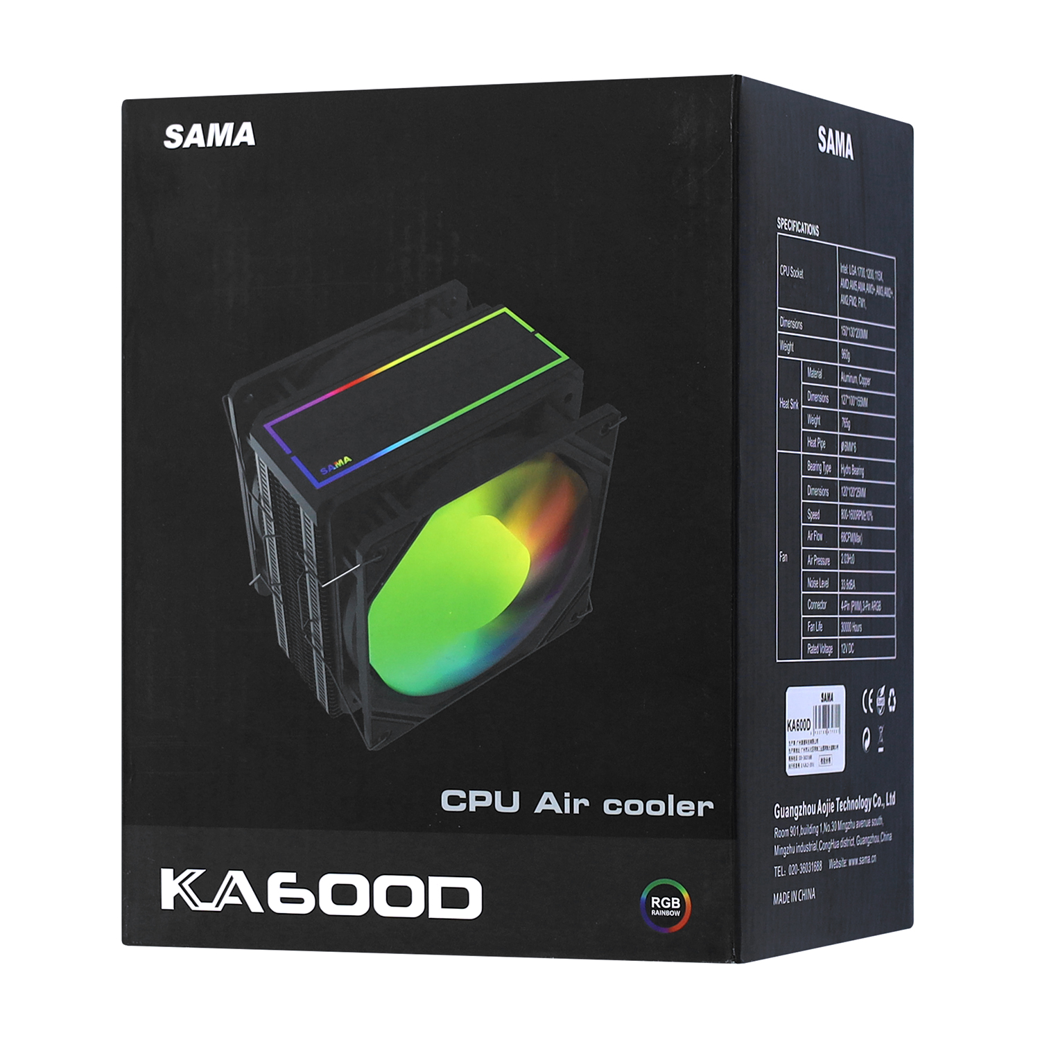Уц. Система охлаждения Sama KA600D, при подключении 3 - pin кабеля автоматически включаются кулера Cooler for S1700/1200/115x/AMD, ARGB, 1600rpm, 68 CFM, 3.6 dBA