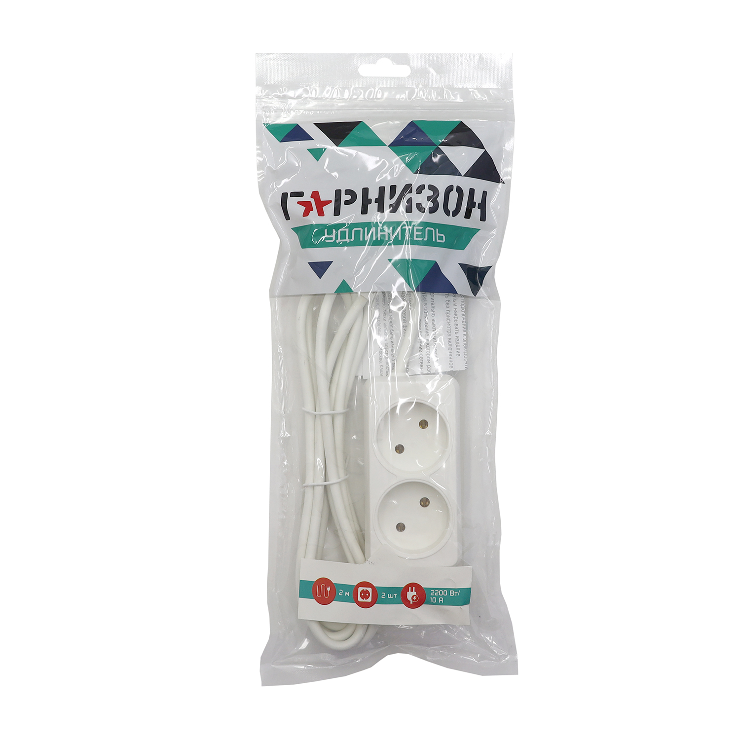 Удлинитель 220V Гарнизон EL-NL2-W-2, 2м, Белый 2 розетки, white