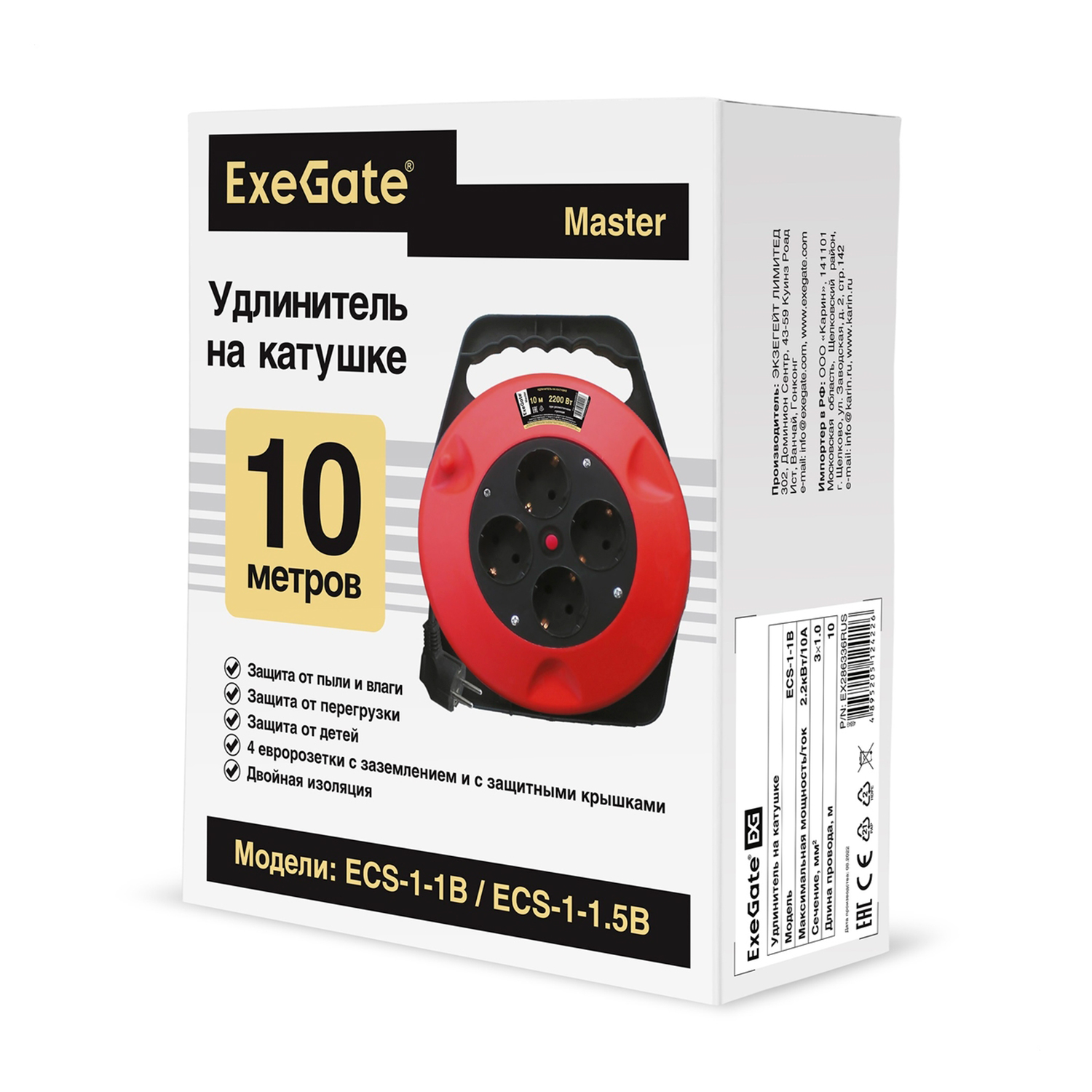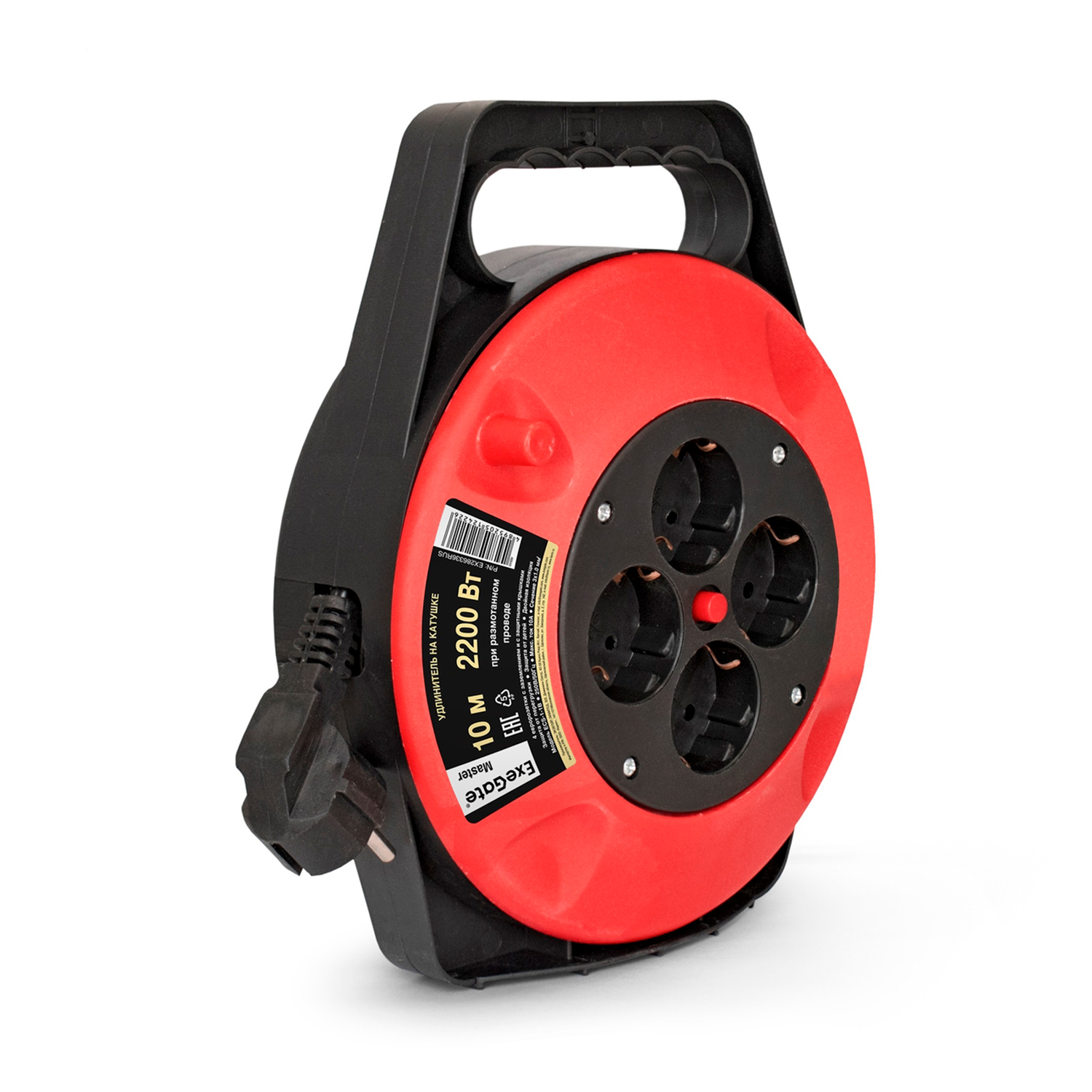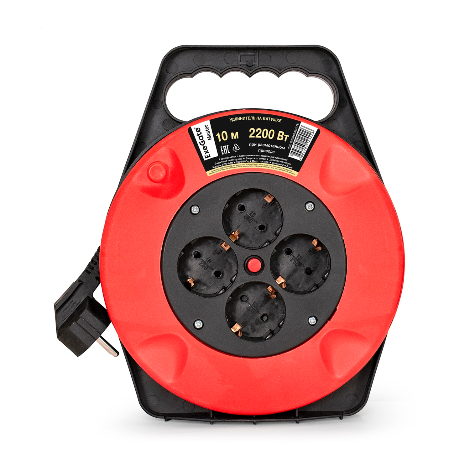 Удлинитель 250V ExeGate Master ECS-1-1B, 10м, катушка, 4 розетки, 10A