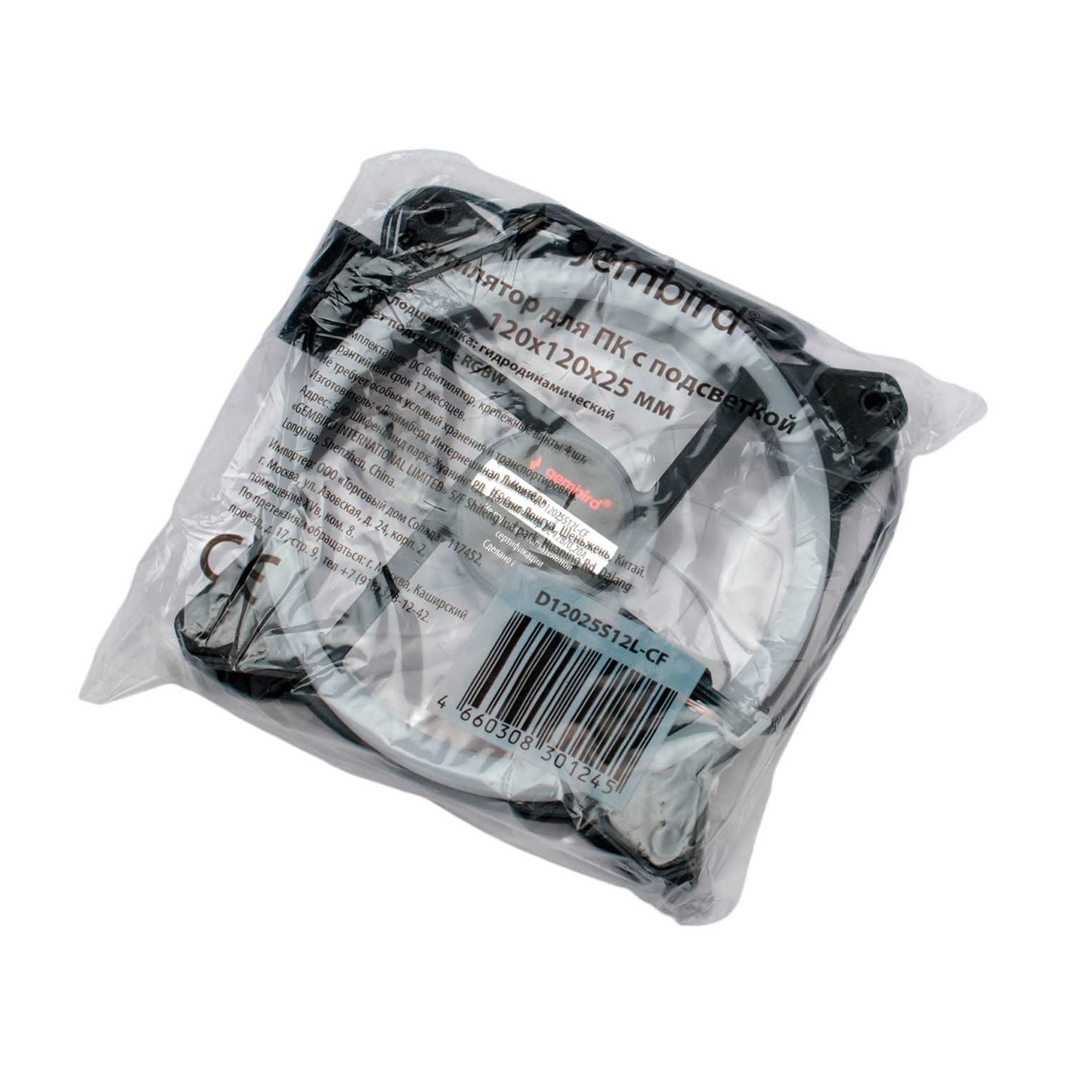 Вентилятор Gembird D12025S12L-CF, 12cm, Черный Fan for case, 1200rpm, 3pin