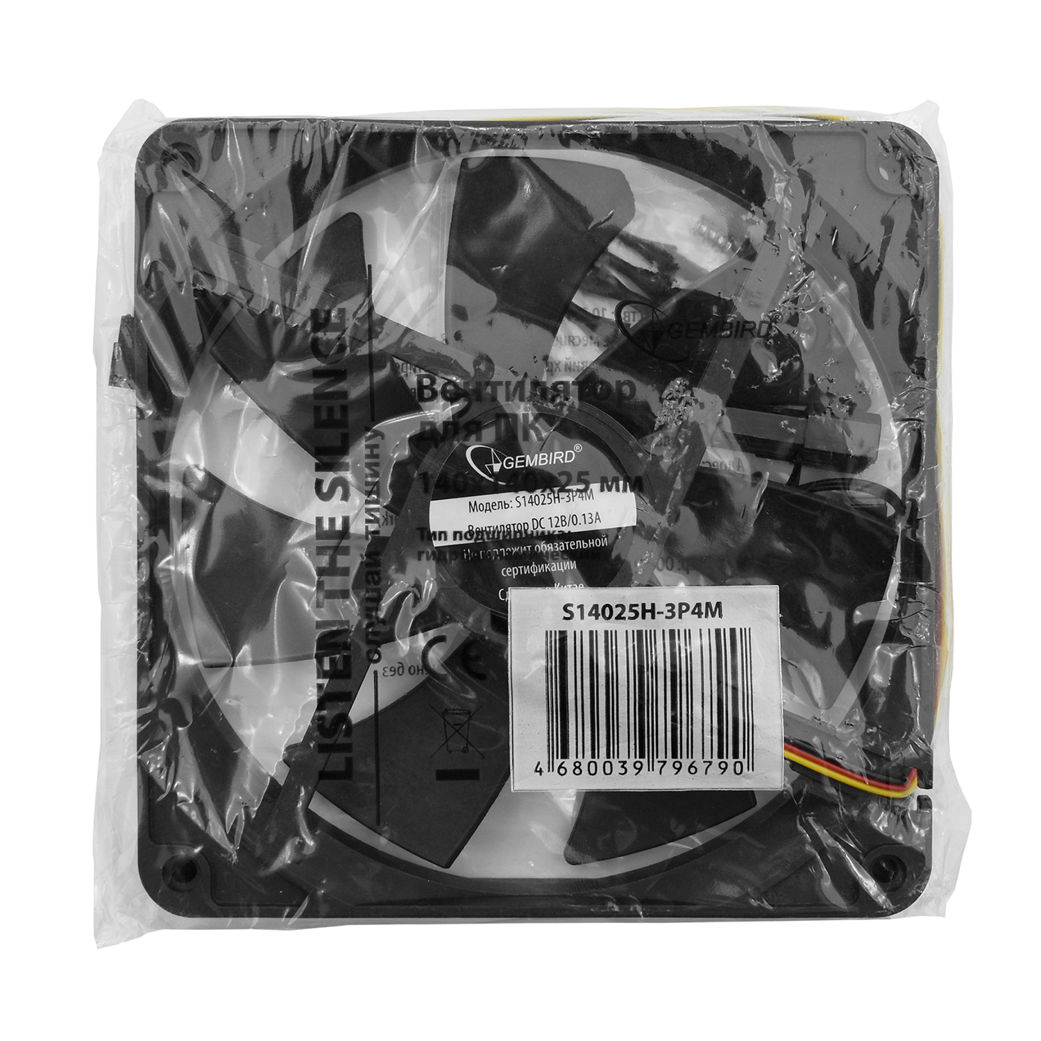 Вентилятор Gembird S14025H-3P4M, 14cm, Черный Fan for case, 2000rpm, 3pin