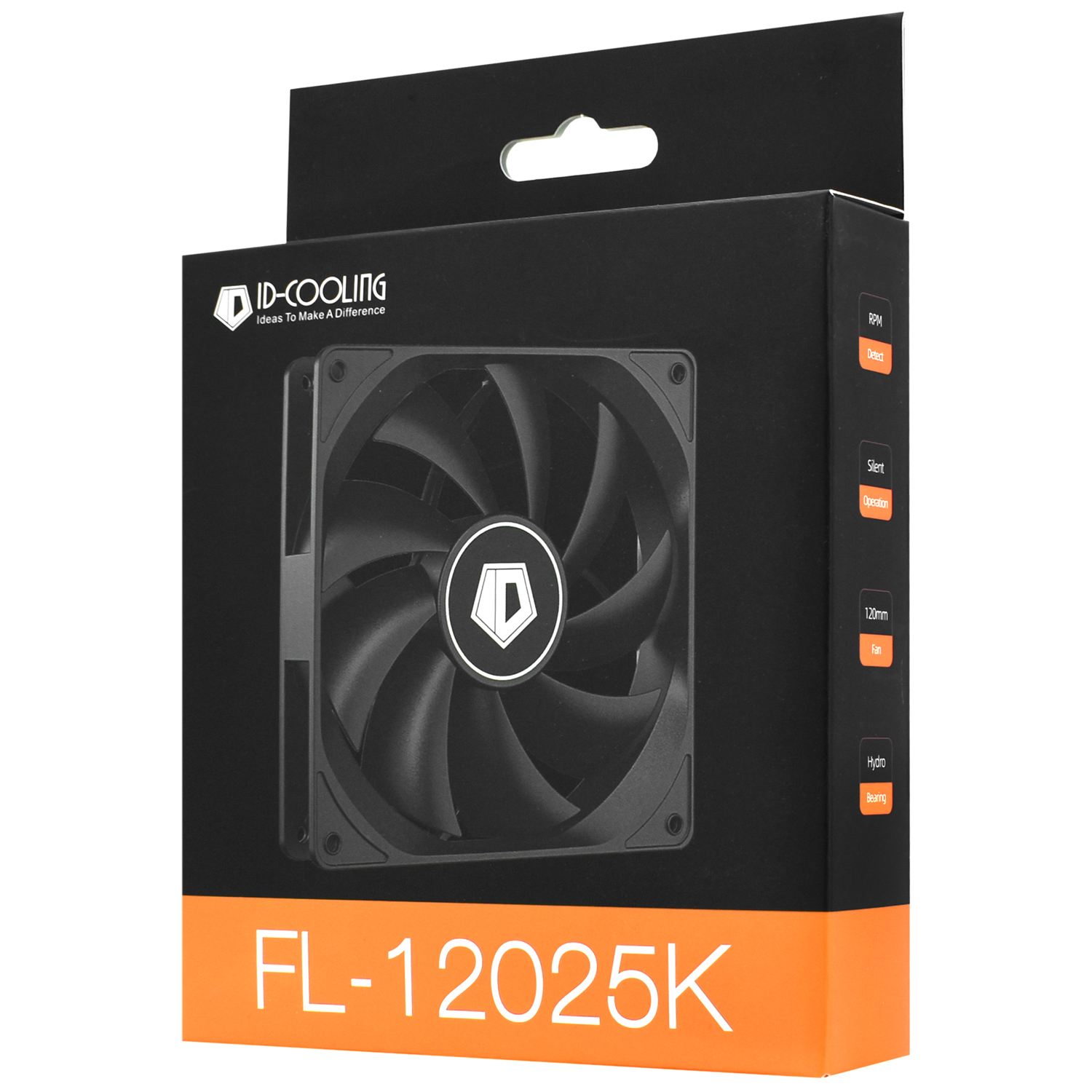 Вентилятор ID-Cooling, FL-12025K, 12cm Fan for case, 1250rpm, 45CFM, 21dBA, 45 CFM, black, 3pin