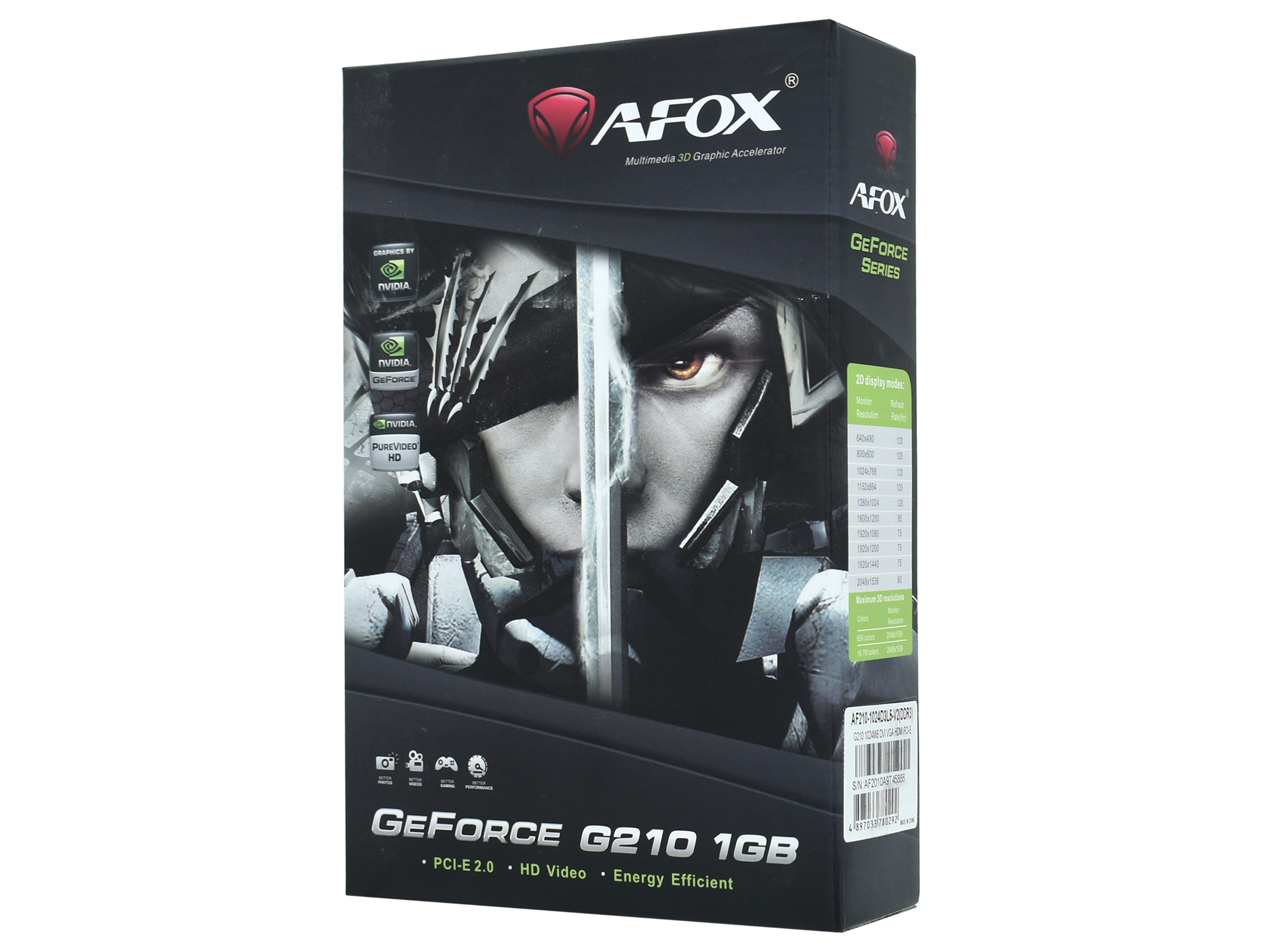 Видеокарта Afox GT210 [AF210-1024D3L5-V2], 1 GB GPU NVIDIA, GT 210 DVI/HDMI/VGA, GDDR3/64bit, +LP, [AF210-1024D3L5-V2]