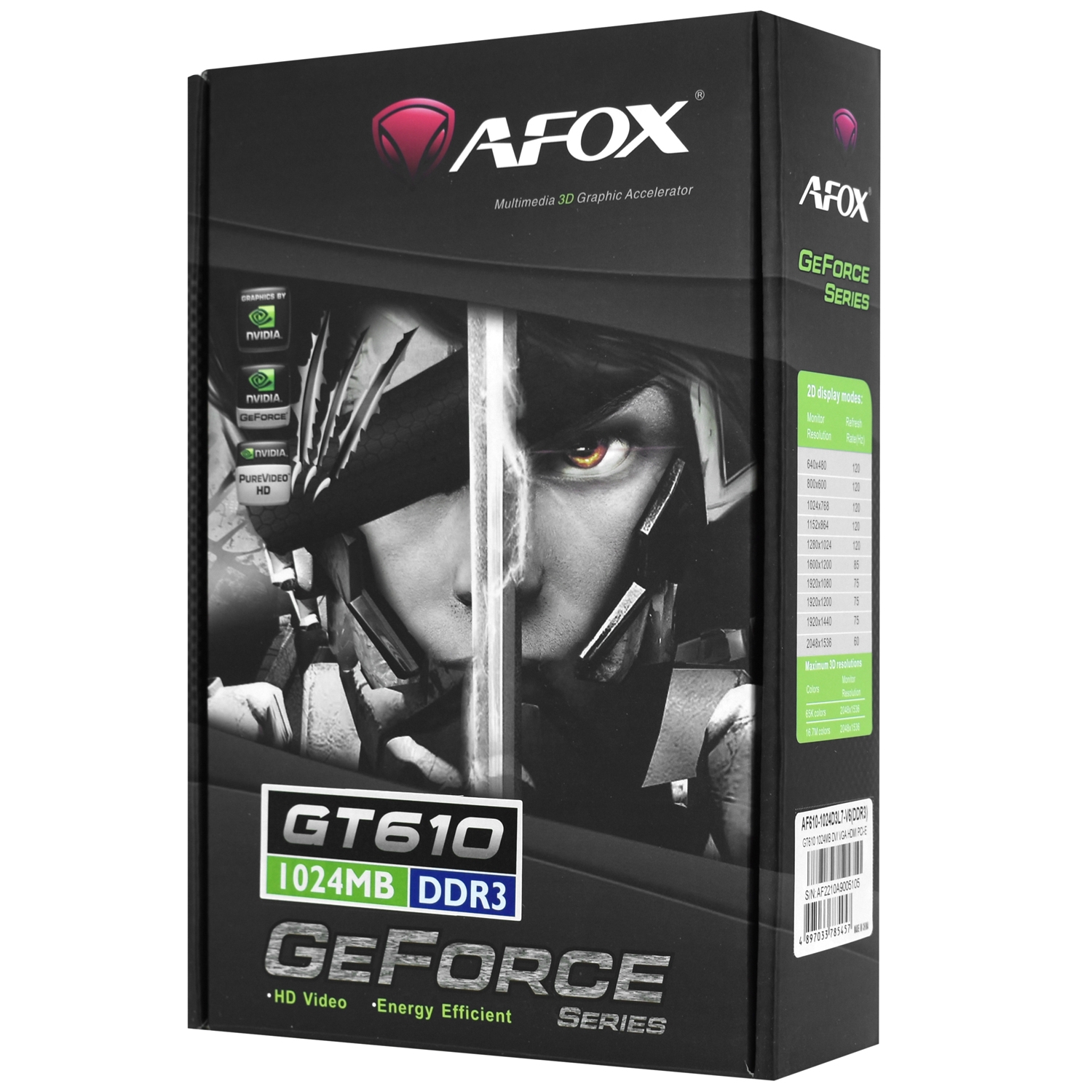 Видеокарта Afox GT610 [AF610-1024D3L7-V6], 1 GB GPU NVIDIA, GT 610 DVI/HDMI/VGA, DDR3/64-bit, +LP, [AF610-1024D3L7-V6]