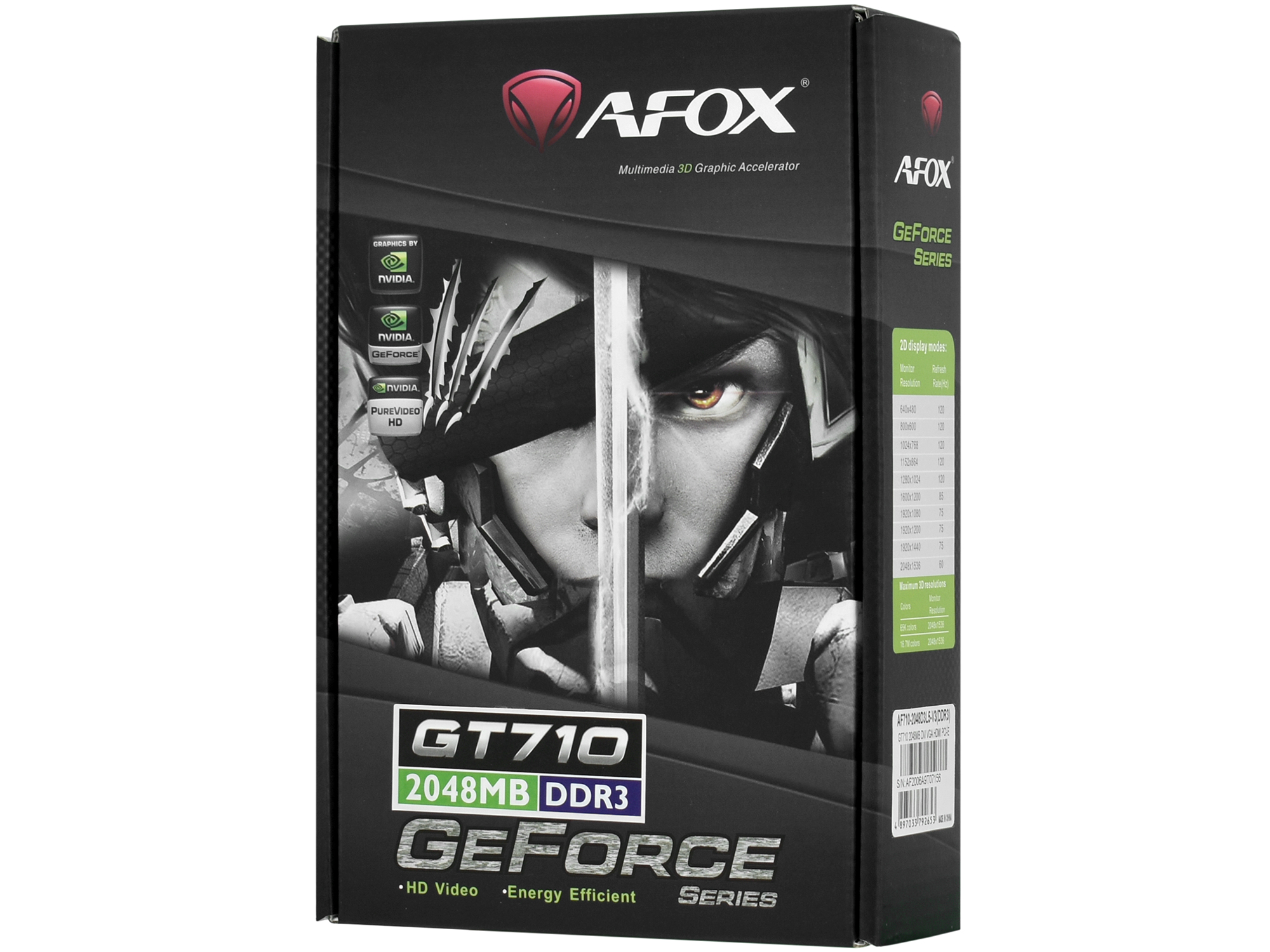 Видеокарта Afox GT710 [AF710-2048D3L5-V3], 2 GB GPU NVIDIA, GT 710 DVI/HDMI/VGA, GDDR3/64bit, +LP, [AF710-2048D3L5-V3]