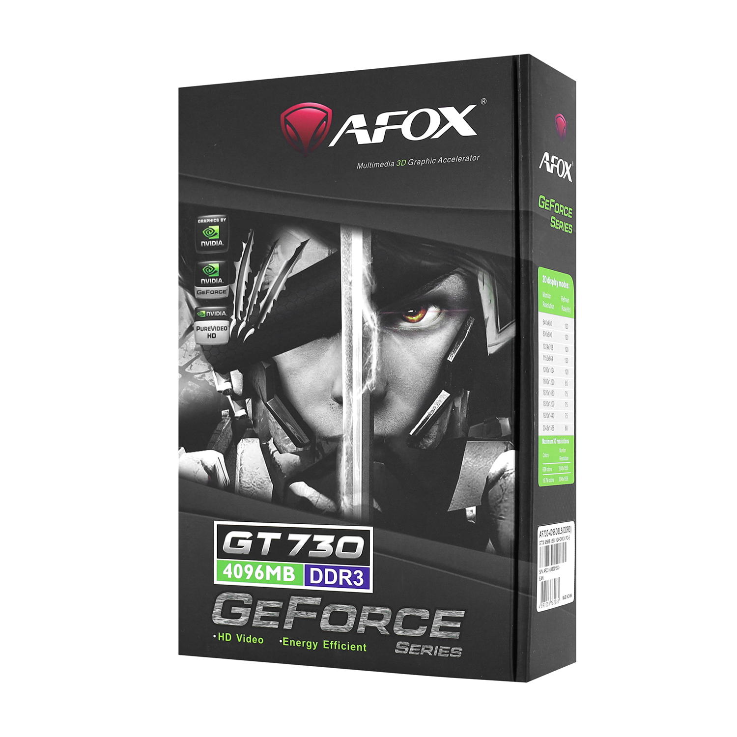 Видеокарта Afox GT730, 4 GB [AF730-4096D3L5] GPU NVIDIA, GT 730 DVI/HDMI/VGA, GDDR3/128bit, +LP, [AF730-4096D3L5]