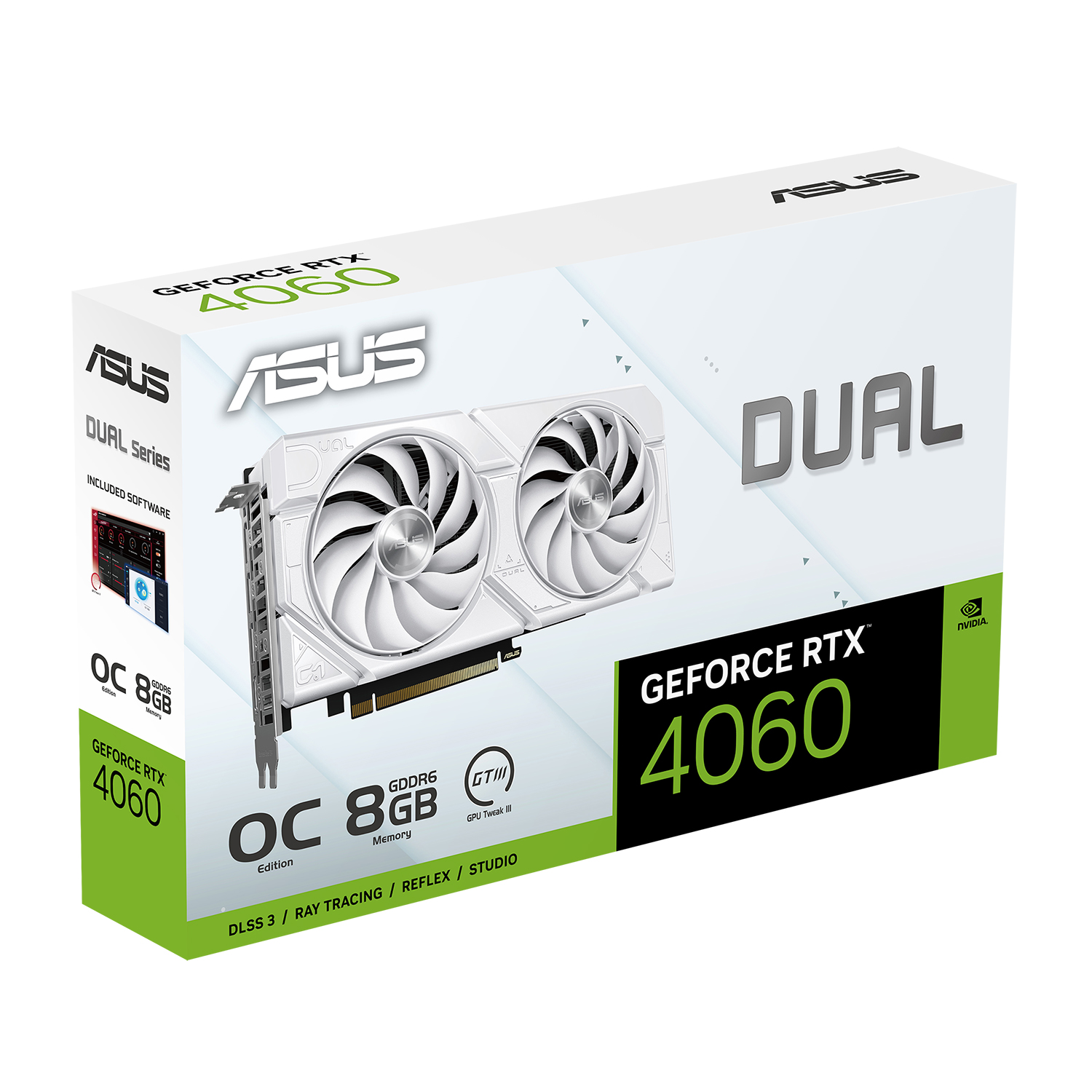Видеокарта ASUS DUAL RTX 4060 OC [DUAL-RTX4060-O8G-EVO-WHITE], 8 GB GPU NVIDIA, HDMI/3DP, GDDR6/128-bit, [DUAL-RTX4060-O8G-EVO-WHITE]