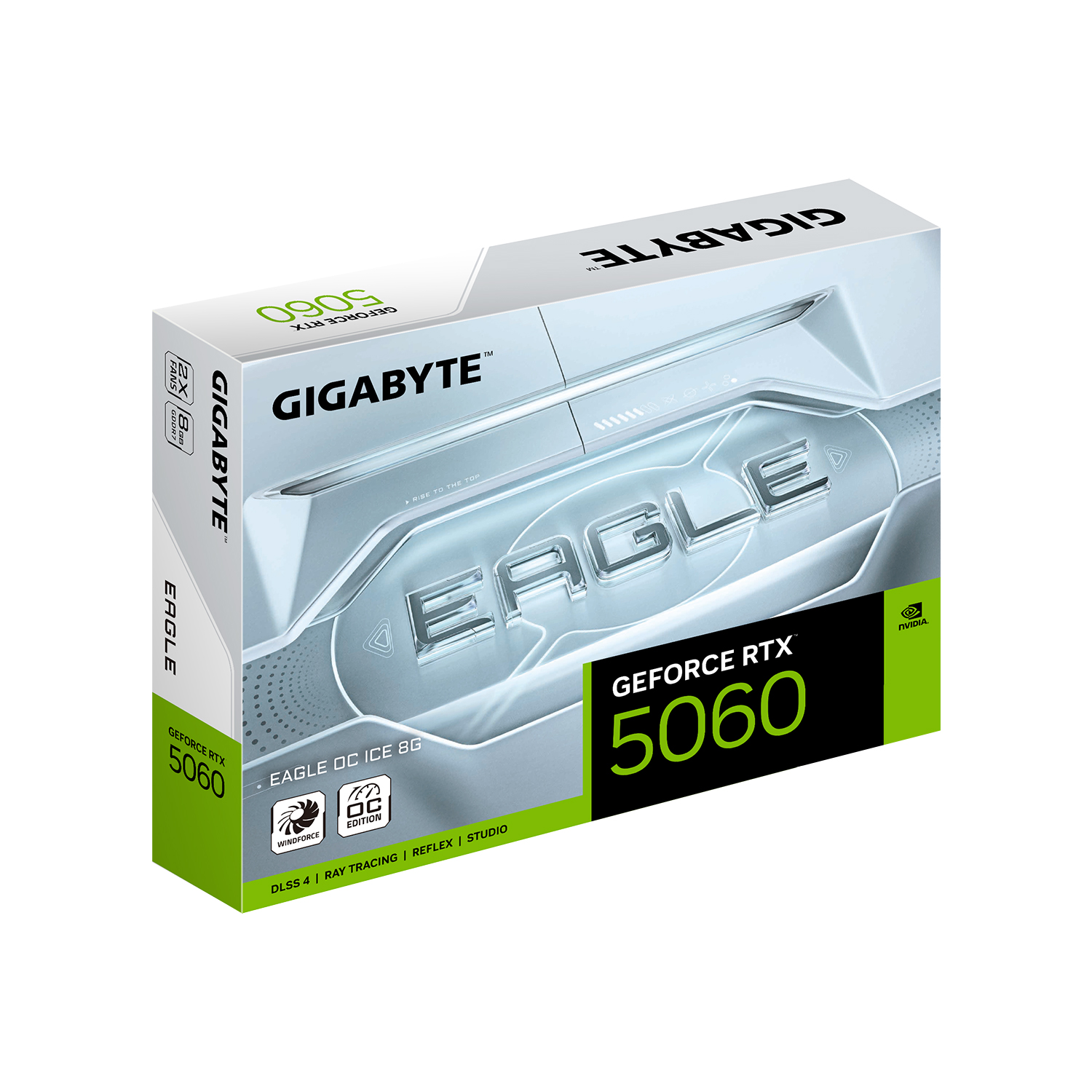 Видеокарта Gigabyte RTX 5060 EAGLE OC [GV-N5060EAGLEOC ICE-8GD], 8 GB GPU NVIDIA, HDMI/3DP, GDDR7/128-bit, [GV-N5060EAGLEOC ICE-8GD]