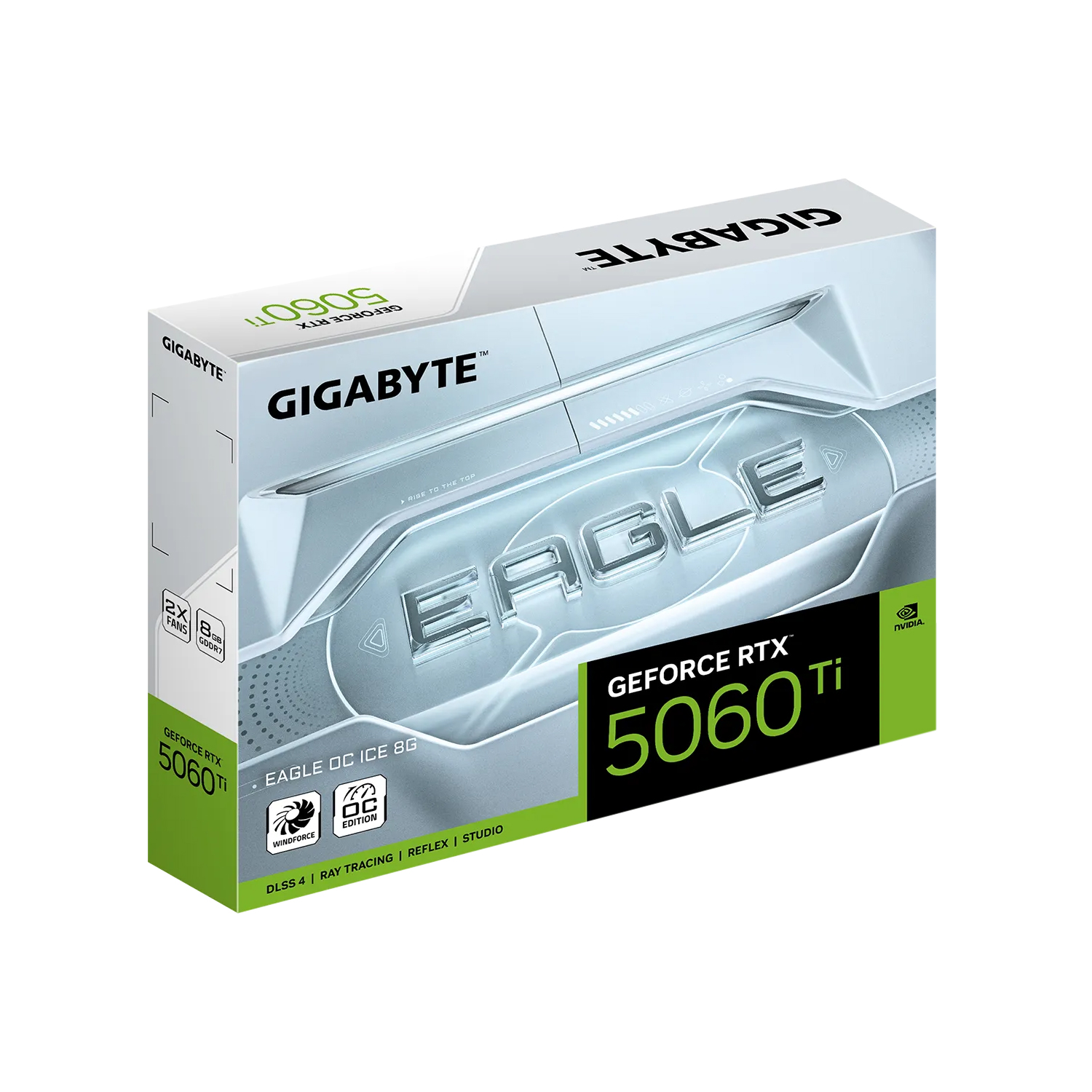 Видеокарта Gigabyte RTX 5060 Ti EAGLE OC ICE [GV-N506TEAGLEOC ICE-8GD], 8 GB GPU NVIDIA, HDMI/3DP, GDDR7/128-bit, [GV-N506TEAGLEOC ICE-8GD]