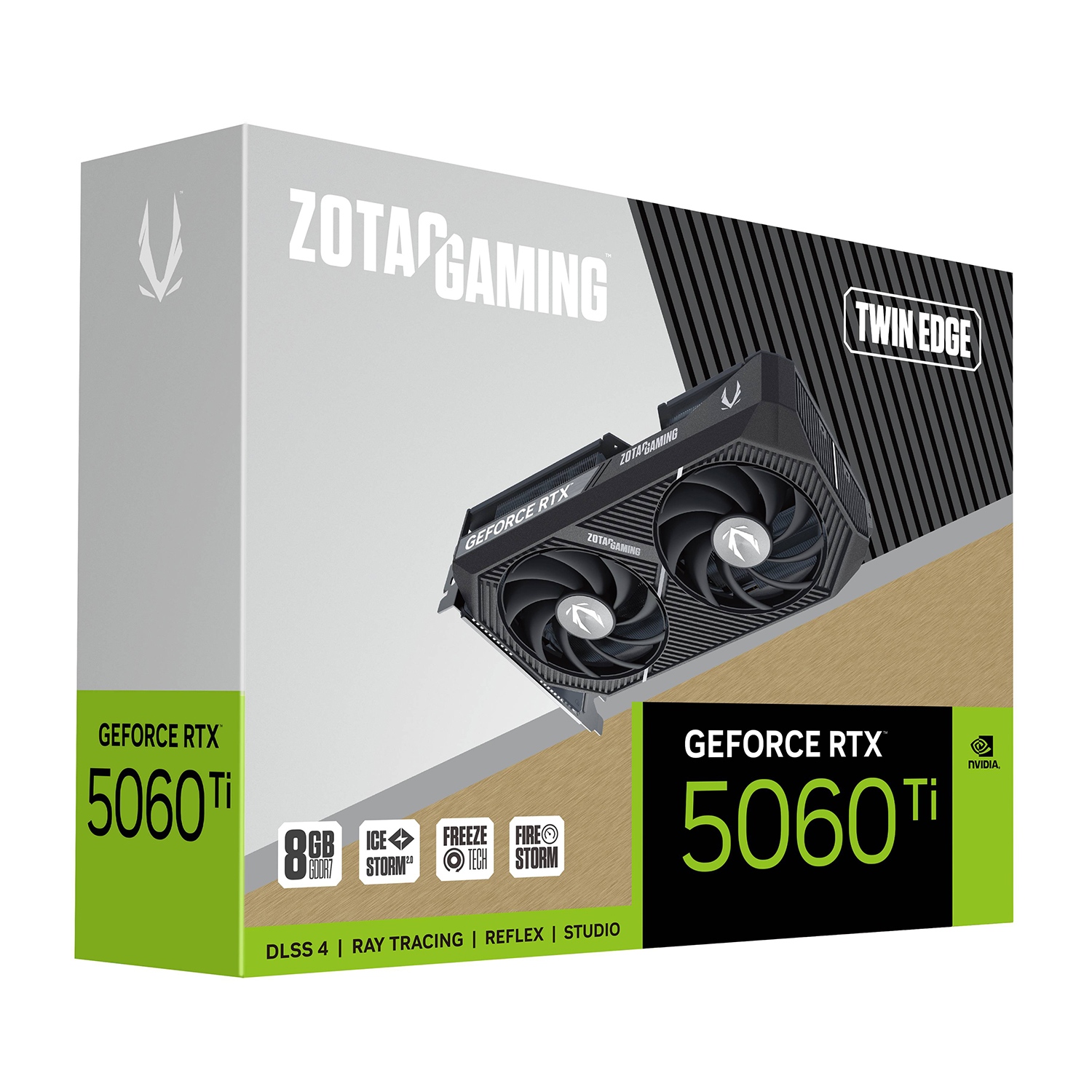 Видеокарта ZOTAC RTX 5060 Ti TWIN EDGE , 8 GB GPU NVIDIA, HDMI/3DP,GDDR7/128-bit, [ZT-B50610E-10M]