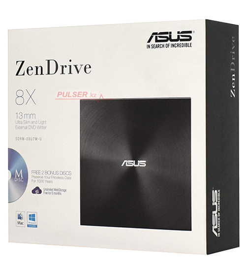 Внешний оптический привод Asus ZenDrive U7M, Черный Ext DVD-RW, DVD±R/RW/-RAM,±R9, CD-R/RW, SDRW-08-U, M-Disk, USB, slim, black
