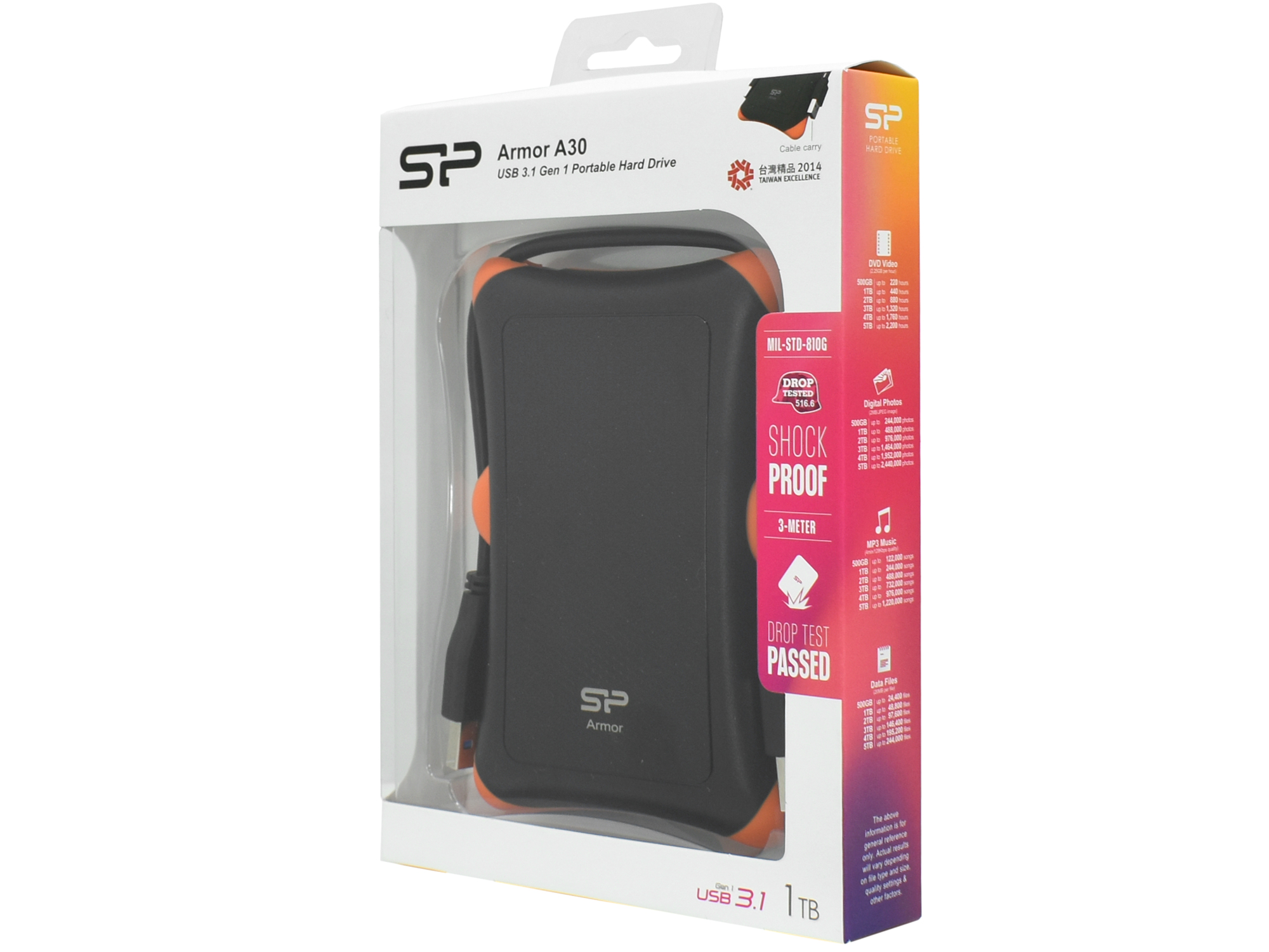 Внешний жесткий диск Silicon Power A30, SP010TBPHDA30S3K, 1 TB, black-orange HDD USB USB 3.1