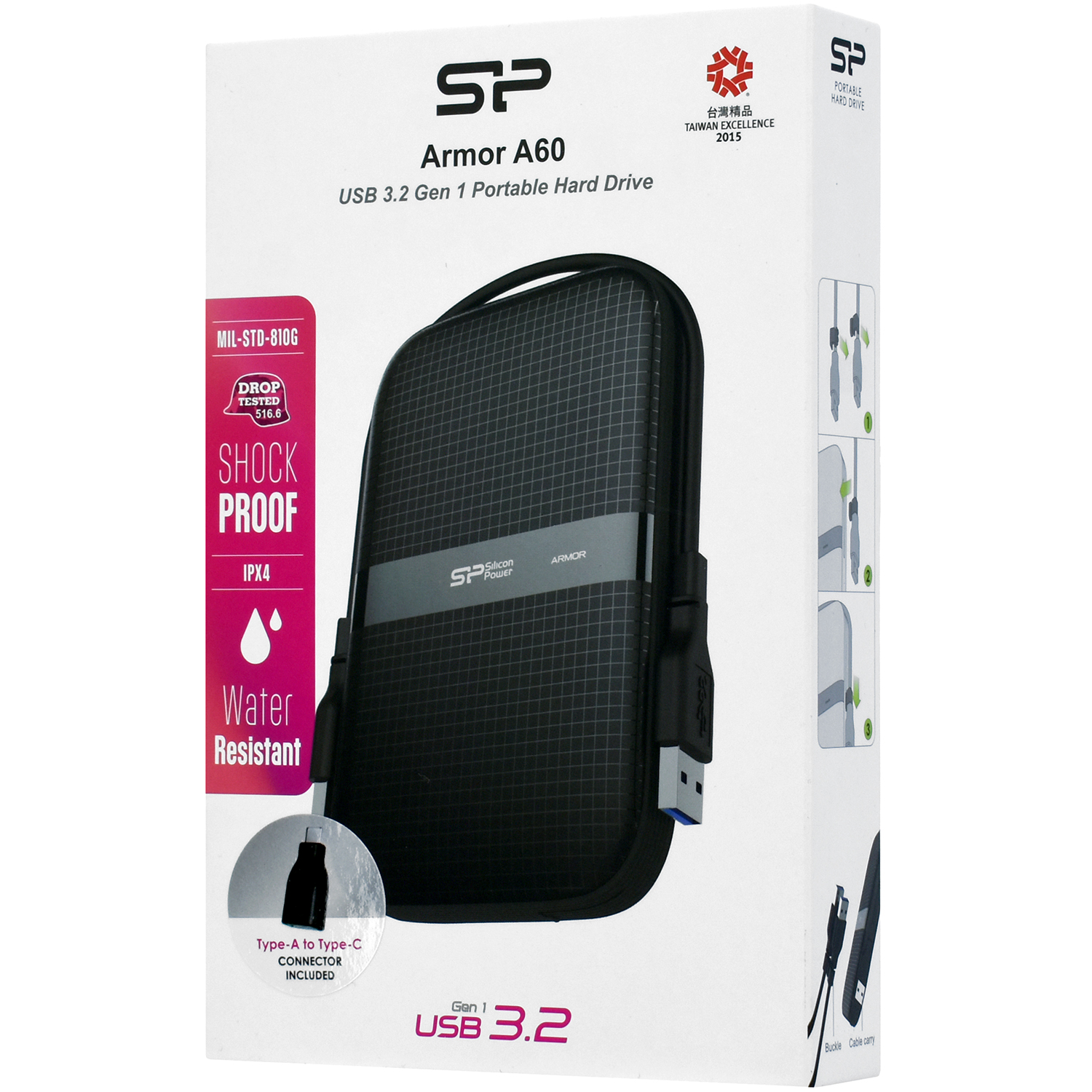 Внешний жесткий диск Silicon Power A60, SP020TBPHDA60SCA, 2 TB, black HDD USB USB3.2 (+Type-C переходник)