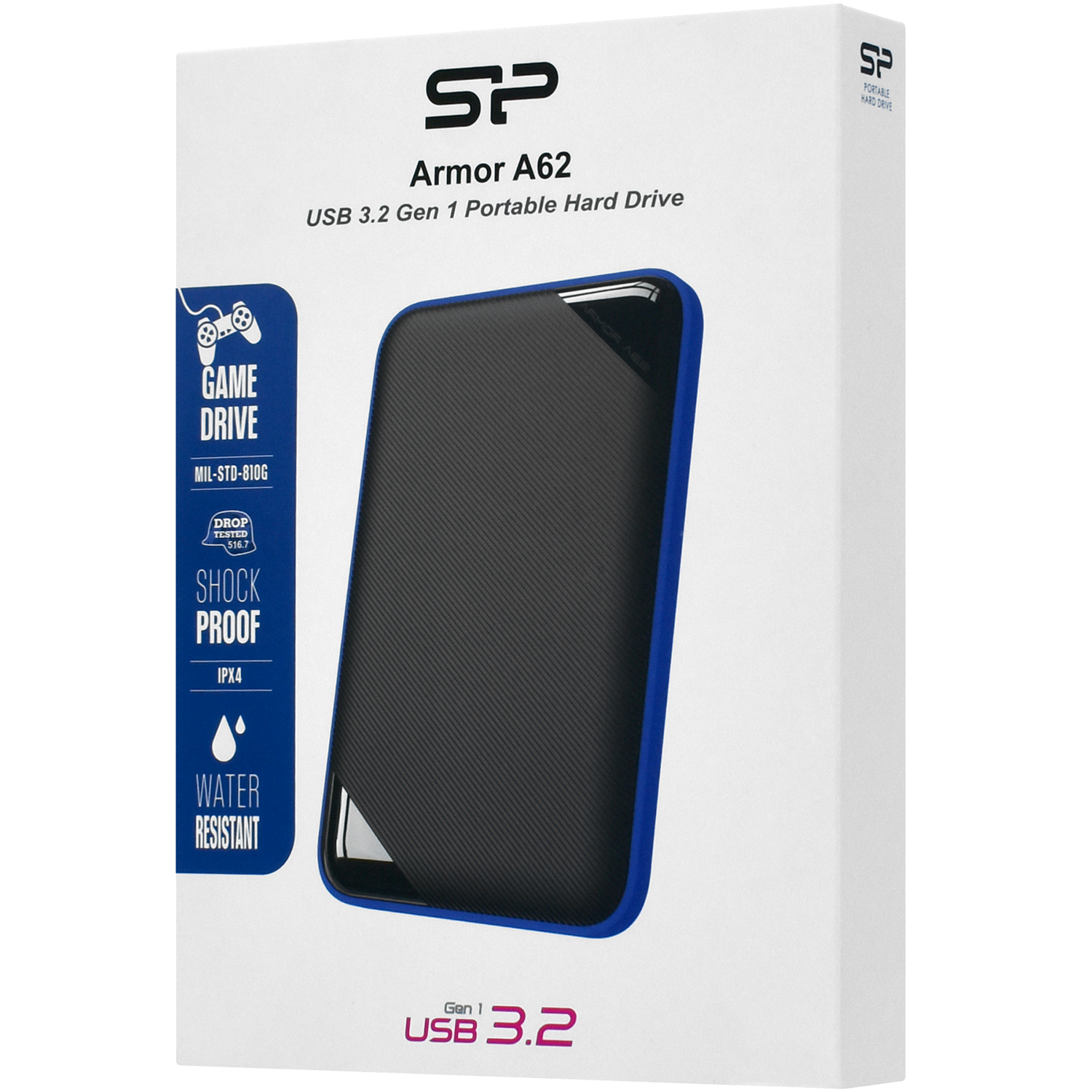 Внешний жесткий диск Silicon Power A62 2 TB (SP020TBPHD62SS3B), black-blue HDD USB SP020TBPHD62SS3B, USB 3.2