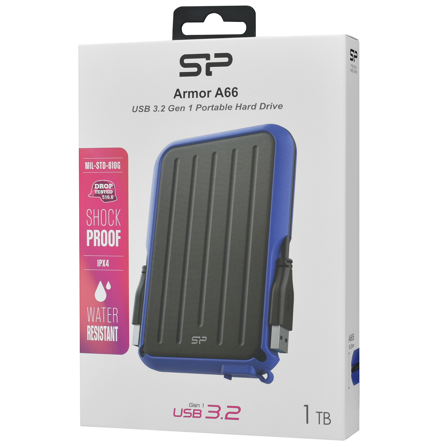 Внешний жесткий диск Silicon Power A66, SP010TBPHD66SS3B, 1 TB, blue HDD USB USB 3.2