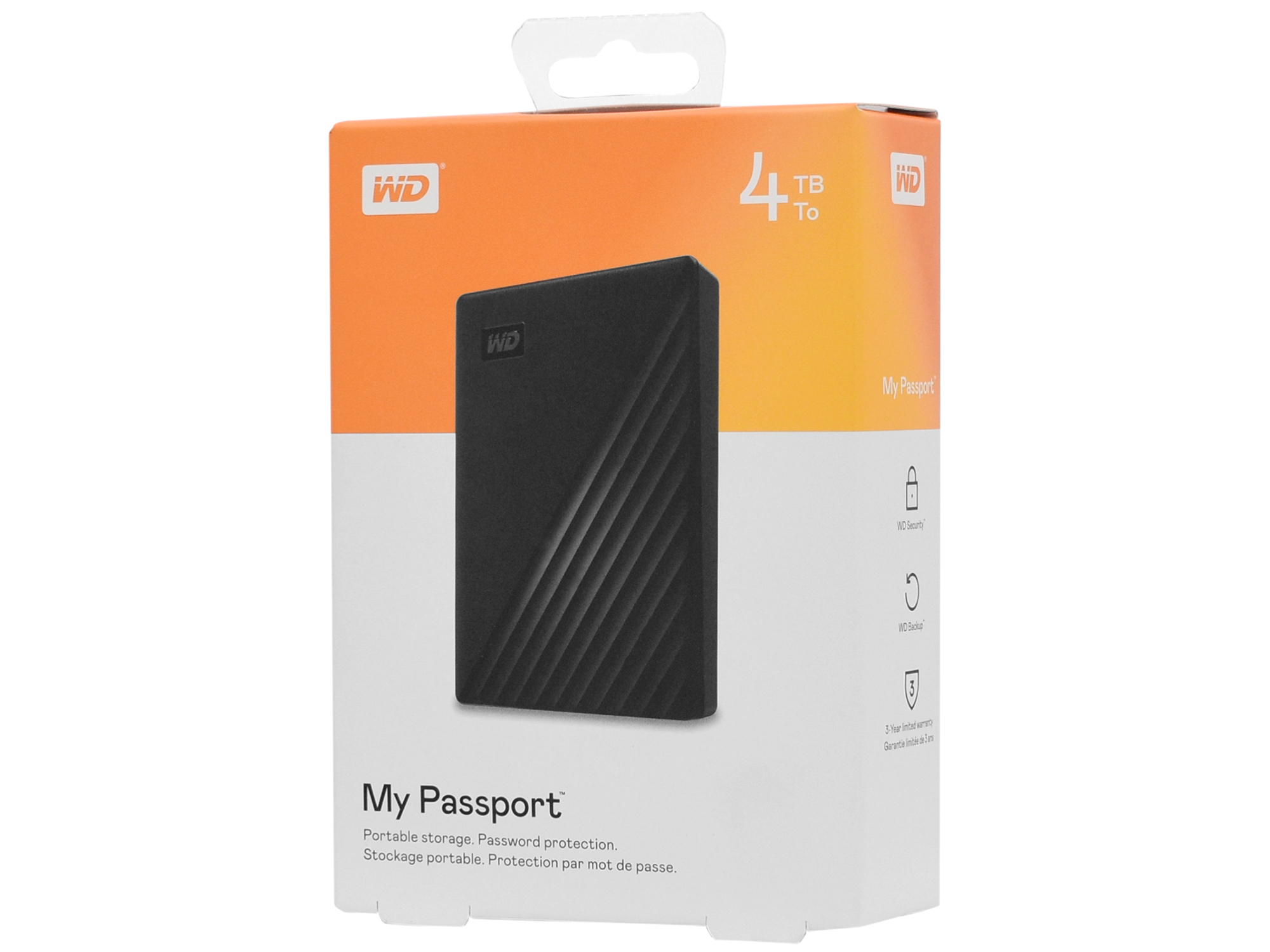 Внешний жесткий диск WD My Passport, 4 TB Черный HDD USB WDBPKJ0040BBK-WESN, USB 3.0, ext, power via USB, black
