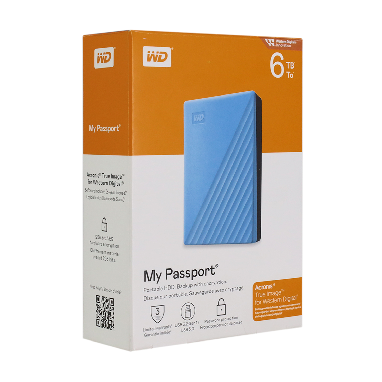 Внешний жесткий диск WD My Passport, 6 TB, Голубой HDD USB WDBR9S0060BBL-WESN, USB 3.2, ext, 2.5", Sky
