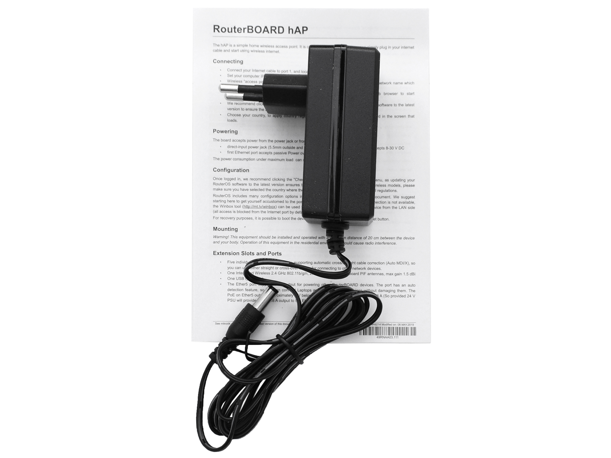 Беспроводной маршрутизатор MikroTik hAP Wireless router, WiFi 4 (300M), (4+1) x 10/100M, PoE, USB, [RB951Ui-2nD]