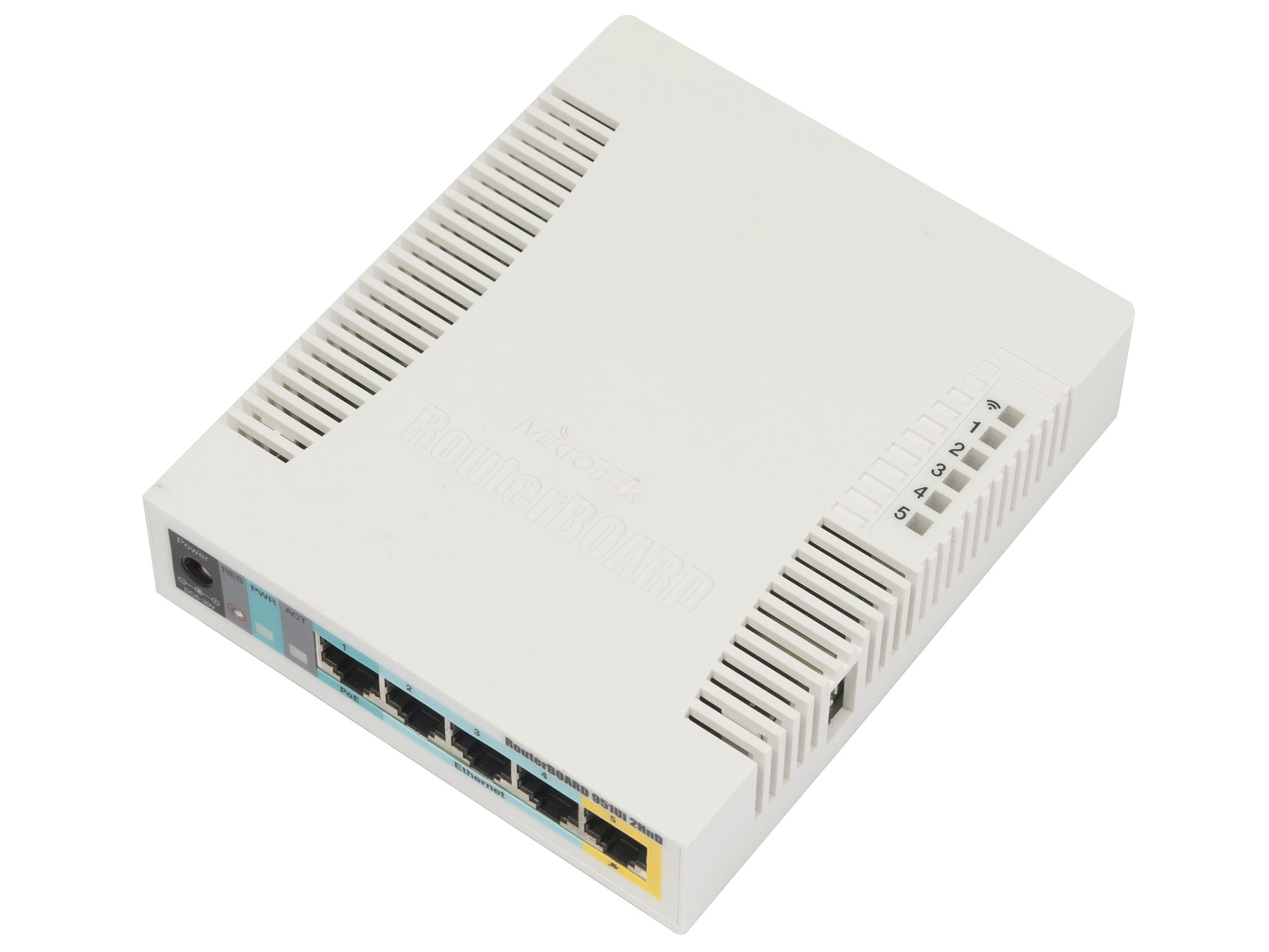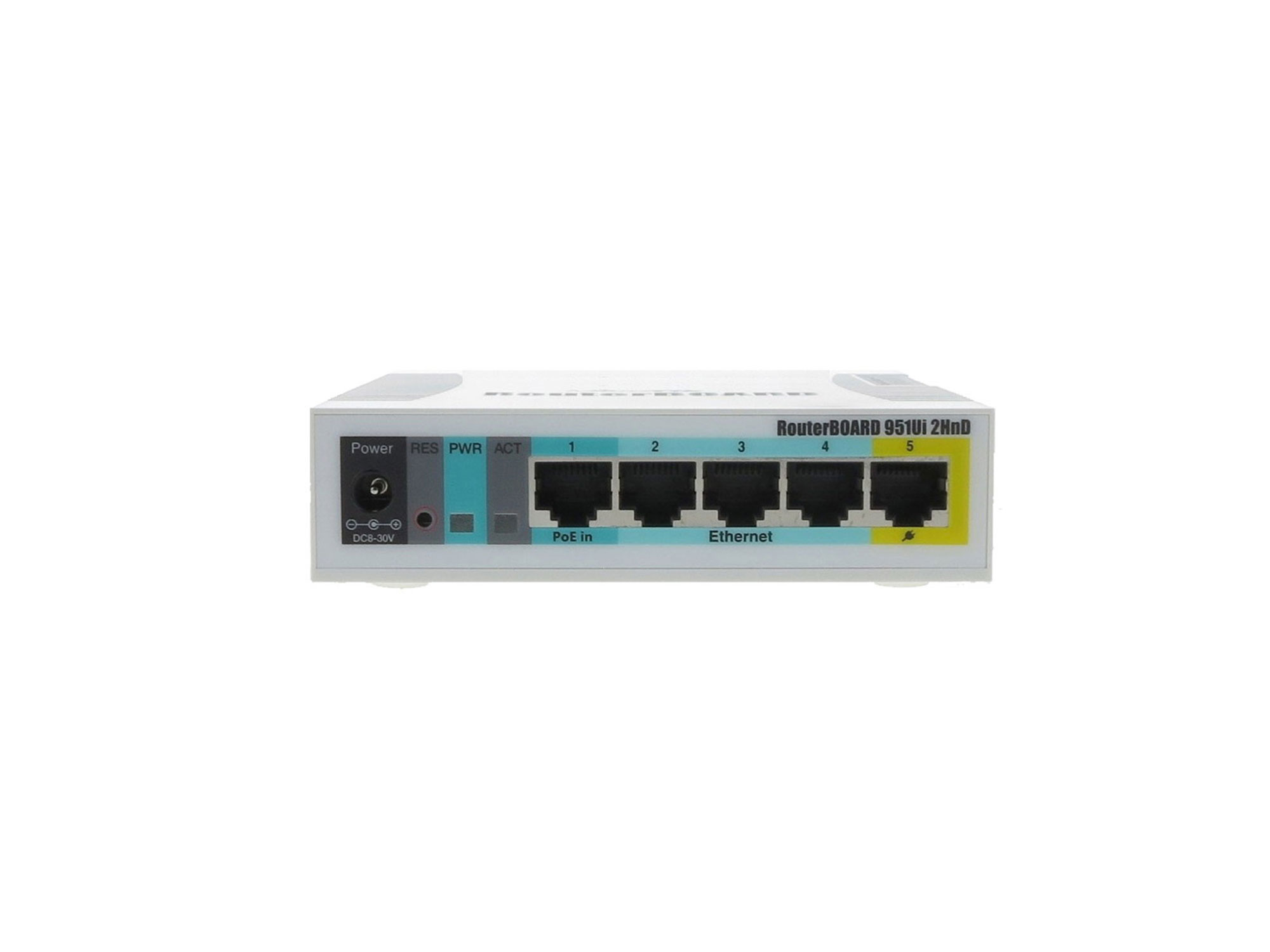 Беспроводной маршрутизатор MikroTik RB951Ui-2HnD Wireless router, WiFi 4 (300Mb), (4+1) x 10/100M, PoE