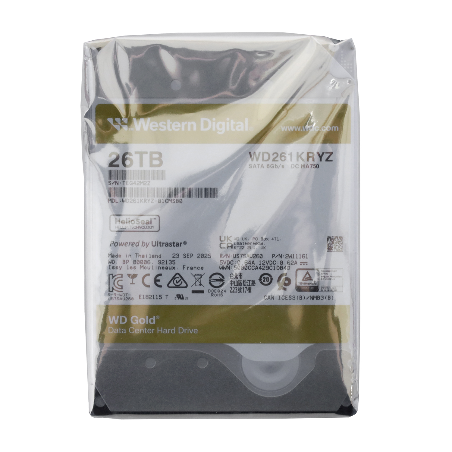 HDD SATA 26000 GB Western Digital Gold, WD261KRYZ, 7200rpm, 512MB cache, SATA 6 Gb/s